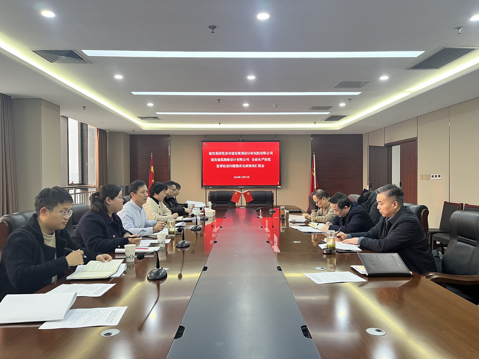 根據(jù)集團(tuán)公司統(tǒng)一部署,2024年12月27日下午,監(jiān)督檢查小組對淮南市建發(fā)規(guī)劃設(shè)計研究院有限公司、淮南市建筑勘察設(shè)計有限公司(以下簡稱兩院)全面從嚴(yán)治黨監(jiān)督檢查整改完成情況進(jìn)行檢查。兩院領(lǐng)導(dǎo)班子成員、相關(guān)部室負(fù)責(zé)人參加會議。